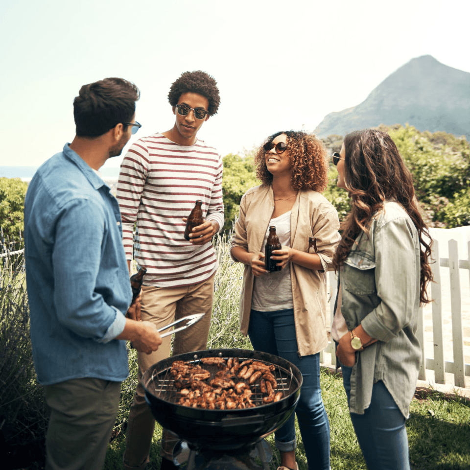 Gather around the grill with neighbors and family. Open-air cooking with quality equipment and seating for long summer evenings.