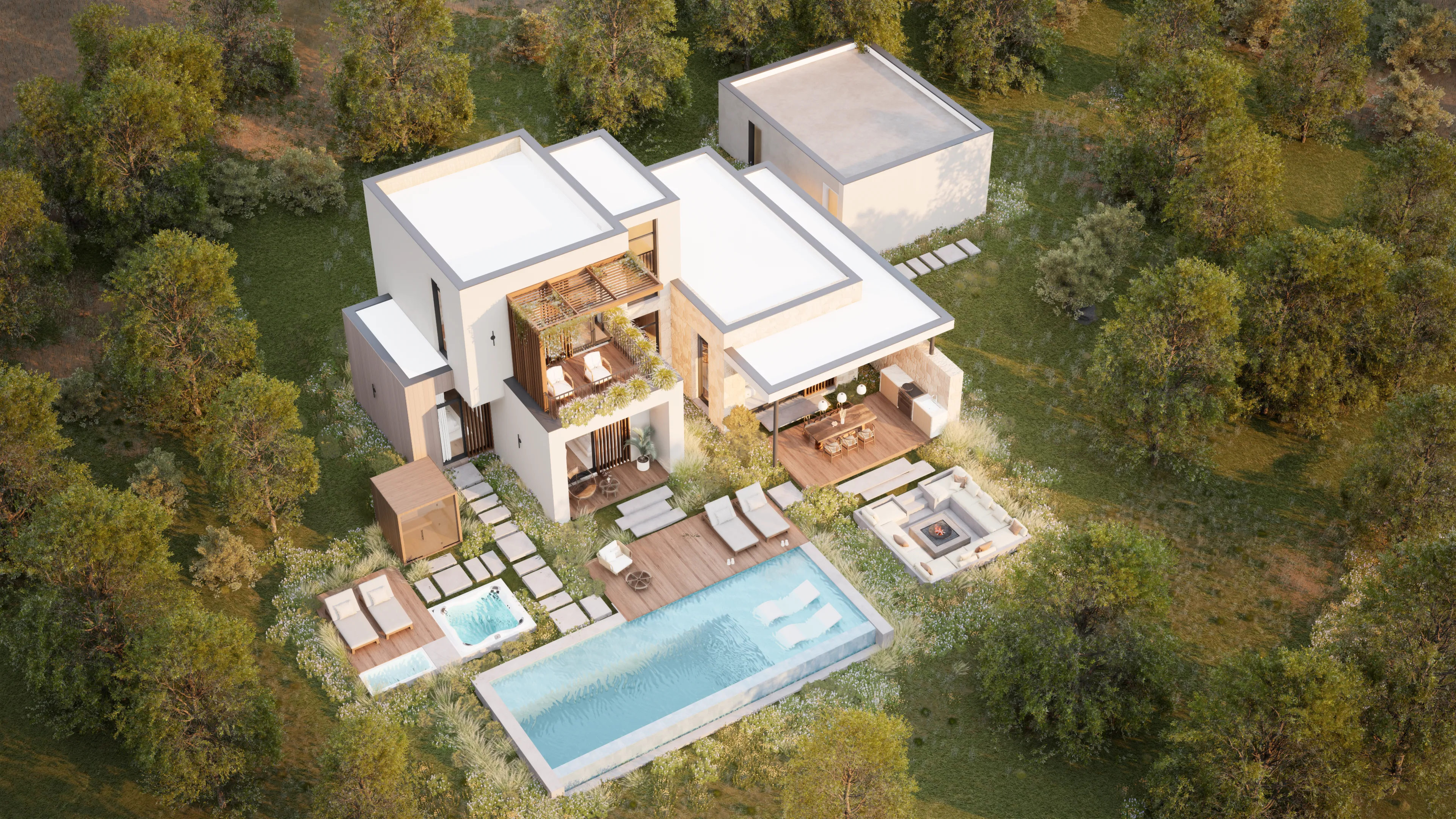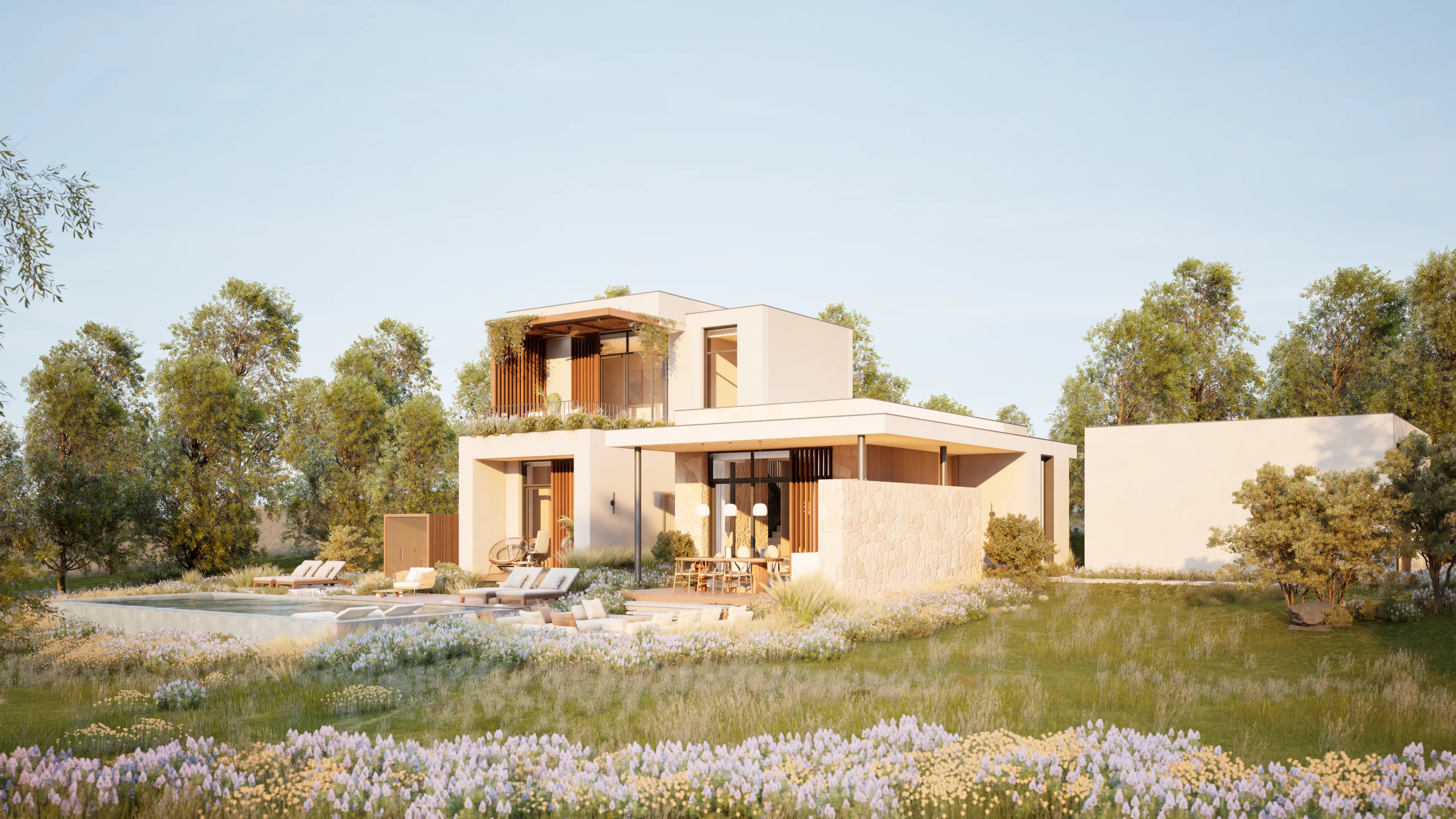 This three-bedroom residence offers open shared spaces and private retreats, supported by a natural indoor-outdoor transition for family life.