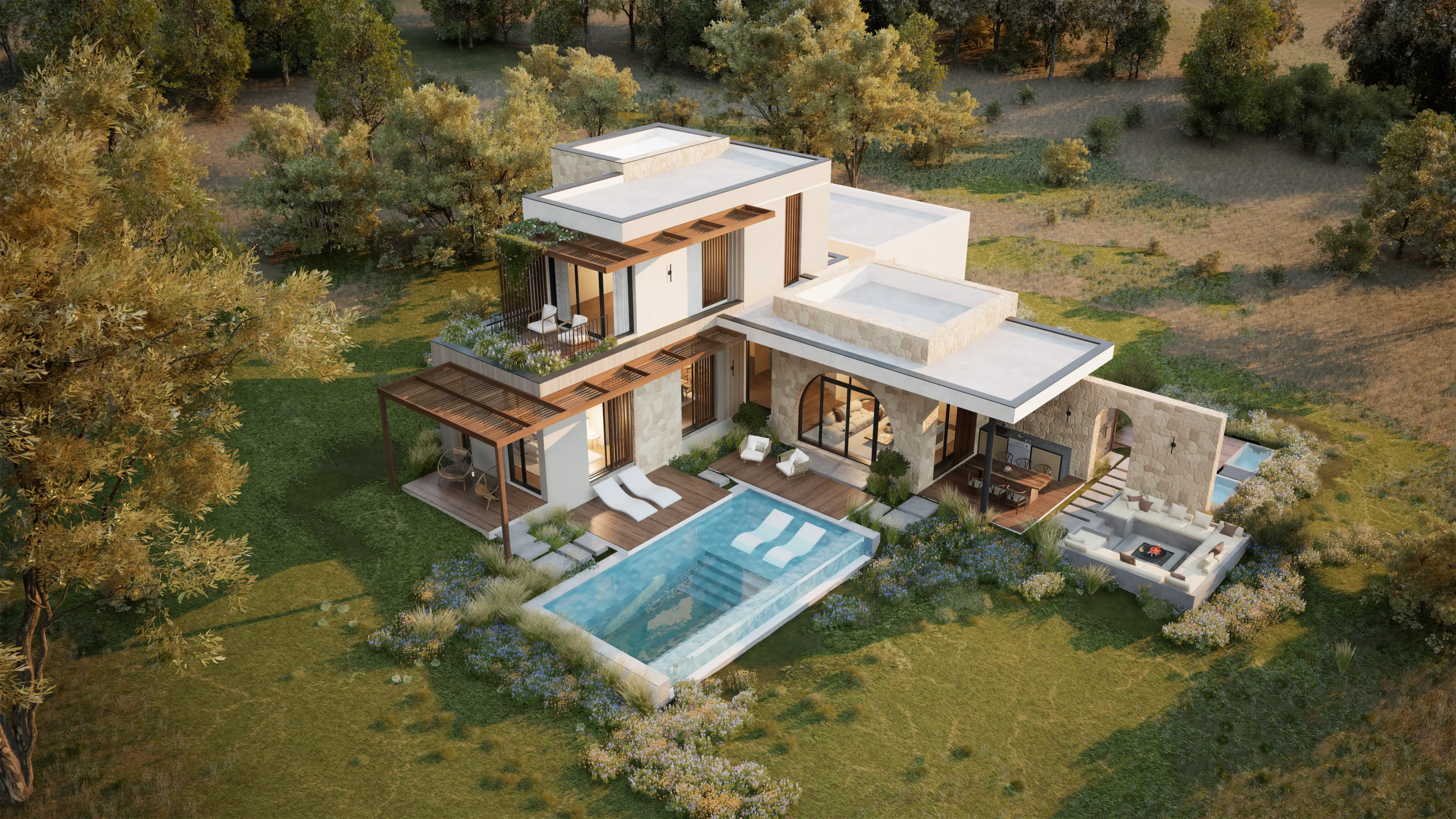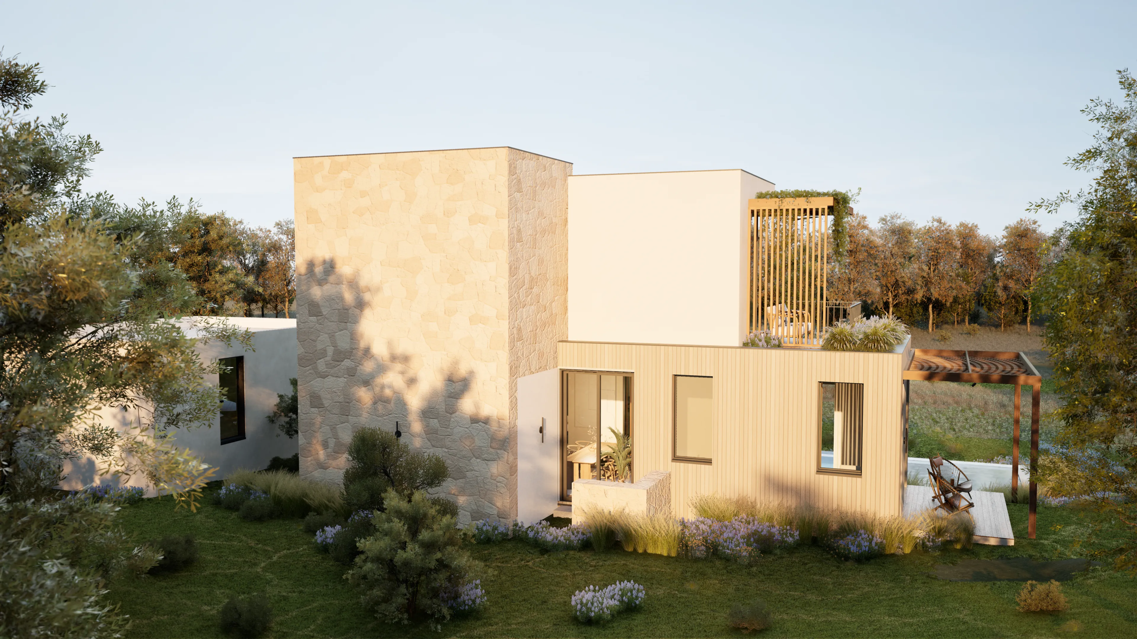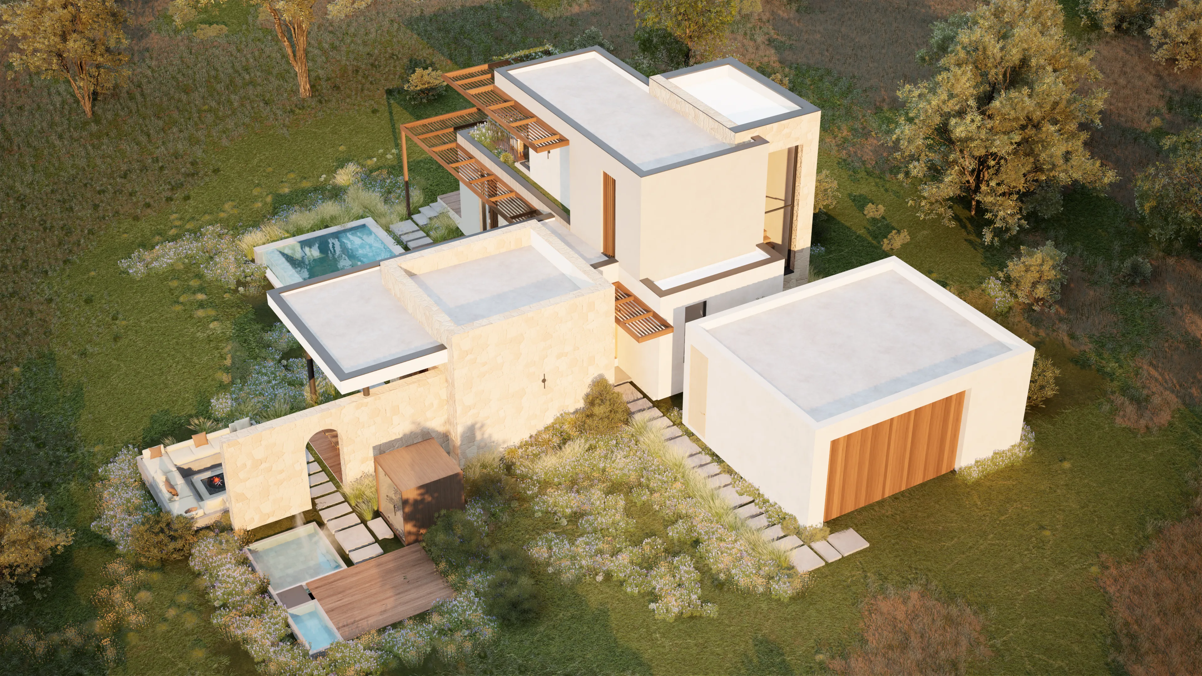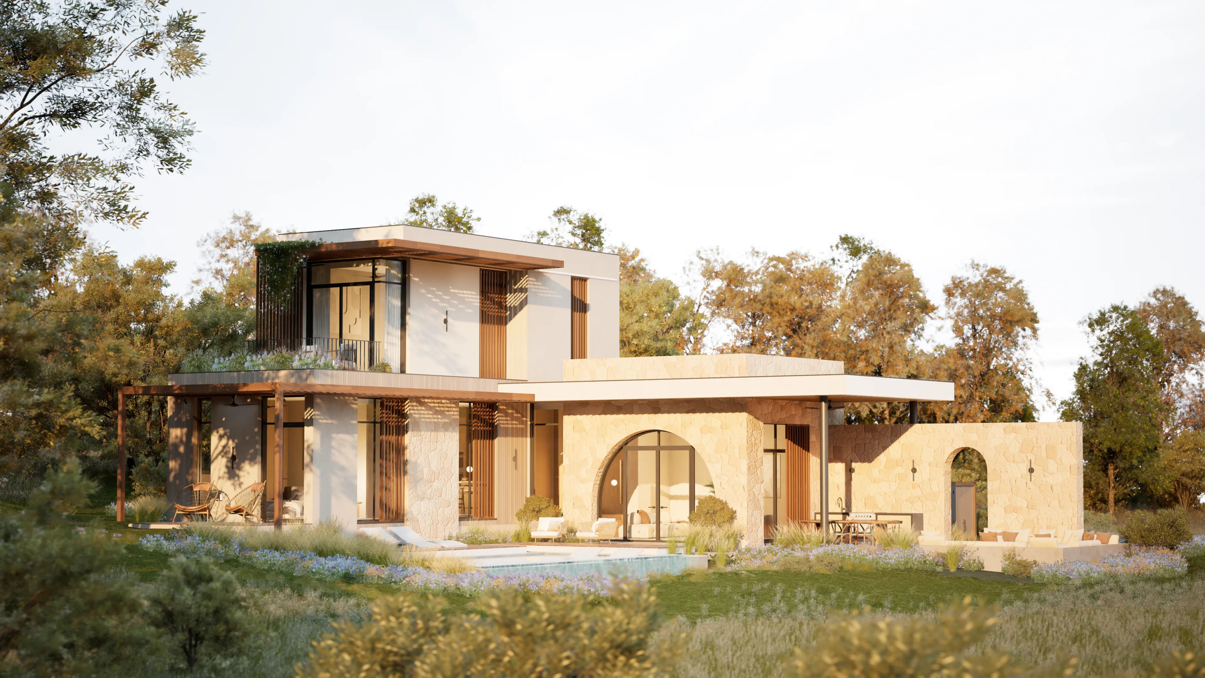 Sanctuary's home design is crafted to be breathtaking and stunning. We have curated a harmonious blend of wood, stone, and lime plaster in common areas to create a warm and inviting atmosphere.
